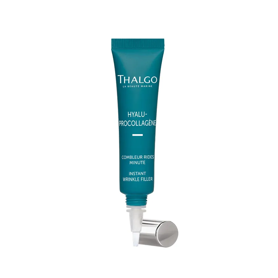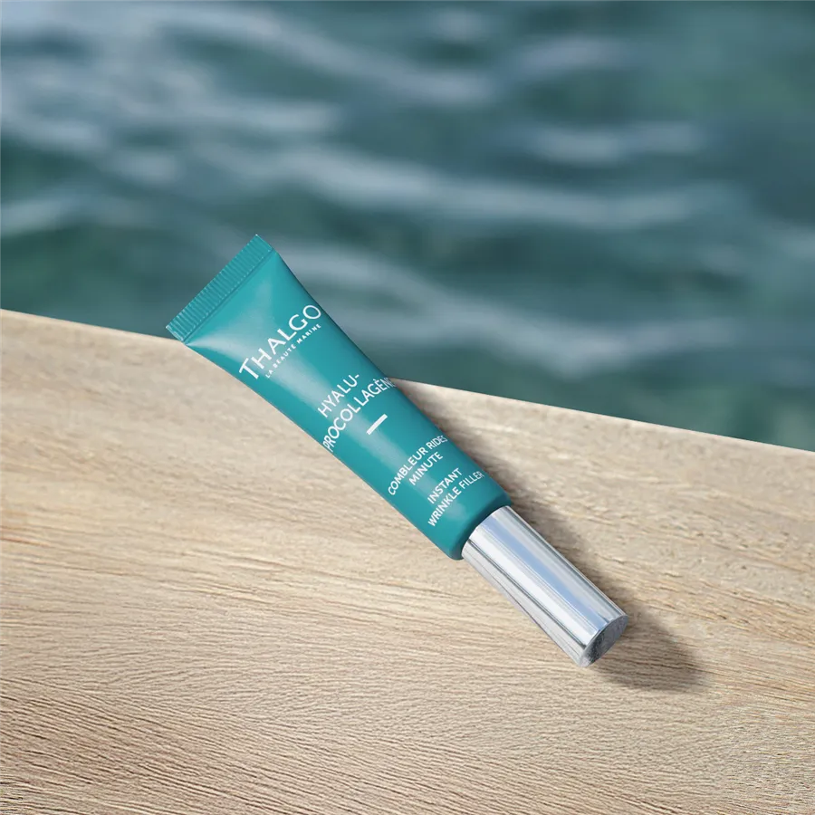 Thalgo Hyalu-Procollagene okamžitý vyplňovač vrásek kombinuje mořský pro-kolagen a mikrosféry kyseliny hyaluronové, které po aplikaci dočasně zvětšují svůj objem a okamžitě vyplňují vrásky zevnitř. Pleť je během jediné minuty hladší a opticky sjednocená. Výsledkem je okamžitý efekt „filleru“ bez injekcí – pleť působí vypnutěji a mladistvěji.