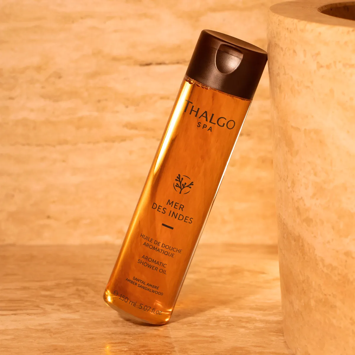 Thalgo3525801677574THVT19019MK1H000101Sprchový olej s esenciálními oleji probudí smysly svou tlumenou aromatickou vůní a provoní vaši pokožku. Pro každodenní chvíli relaxace.