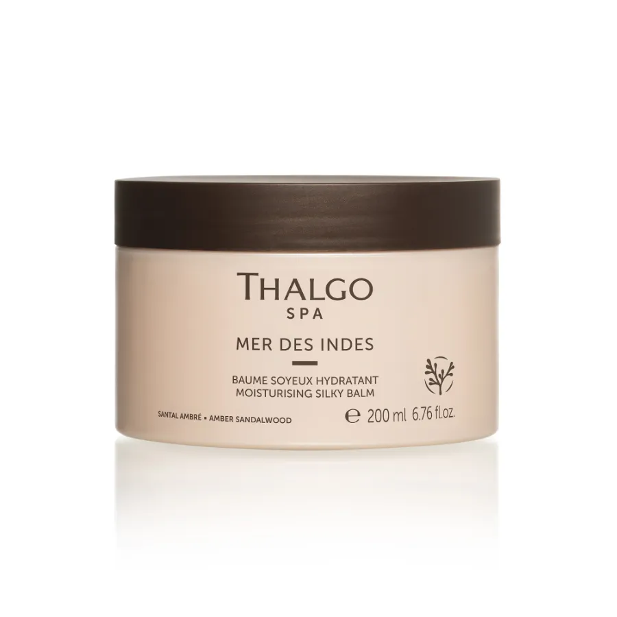 Hedvábný hydratační balzám Mer des Indes Thalgo (“Indický oceán“) zanechává pokožku vyživenou, hydratovanou a jemně provoněnou ambrovou vůní santalového dřeva. Bohatá textura, rozplývající se na pokožce, se rychle vstřebává a nezanechává mastný pocit.