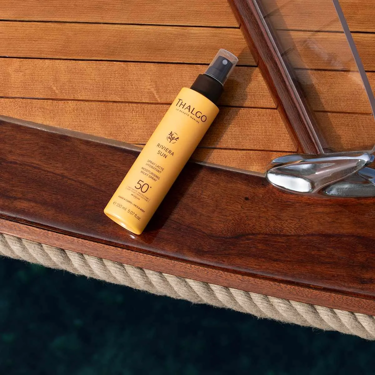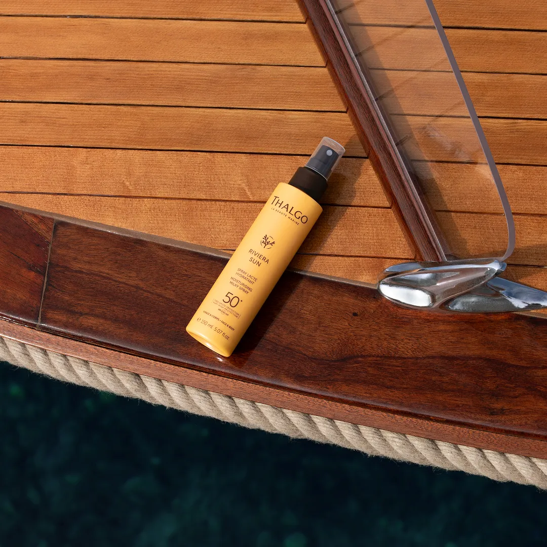 Sluneční kosmetika Riviera Sun s pěstícími účinky poskytuje vysokou ochranu proti UV záření, předčasnému stárnutí pleti a podporuje její zářivý vzhled. Obsahuje novou generaci slunečních filtrů a výtažky ze Středomořských řas bohatých na karotenoidy, které posilují přirozenou obranyschopnost pokožky a chrání její mladistvý vzhled.