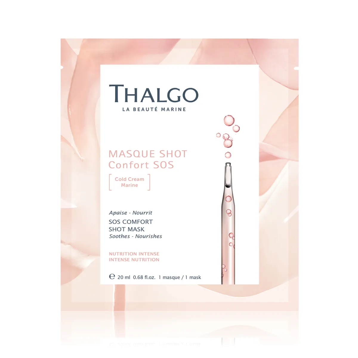 Mořská maska s Cold Cream Marine doplňuje potřebné lipidy a minerály. Pleť vyživuje, napravuje a zanechá ji jemnou. Filtrát patentovaných Mikronizovaných mořských řas pleť revitalizuje a posiluje. Dodává pleti 14 minerálů a mikroživin nezbytných pro její správné fungování.Maska je vytvořena ze 100% rozložitelné rostlinné celulózy obohacené o alginátová vlákna a mořské koncentráty. Díky svému tvaru dokonale přilne k pleti a je vhodná k okamžitému použití.