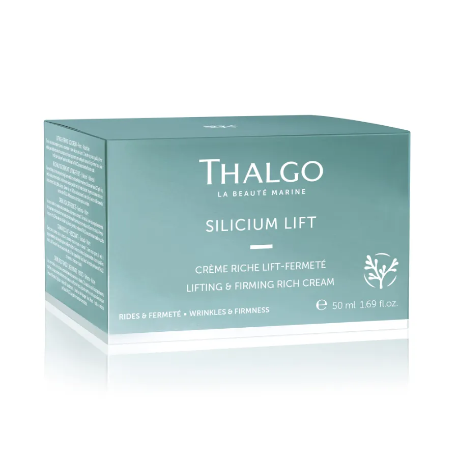 Liftingový a zpevňující krém Thalgo Silicium Lift s obsahem řasového komplexu bohatého na mořské silicium a vitamin C redukuje vrásky a jemné linky, posiluje pleť a navrací jí svěží vzhled. Krém je obohacený o malinová semínka s vyživujícím účinkem. Má přepychovou bohatou texturu.