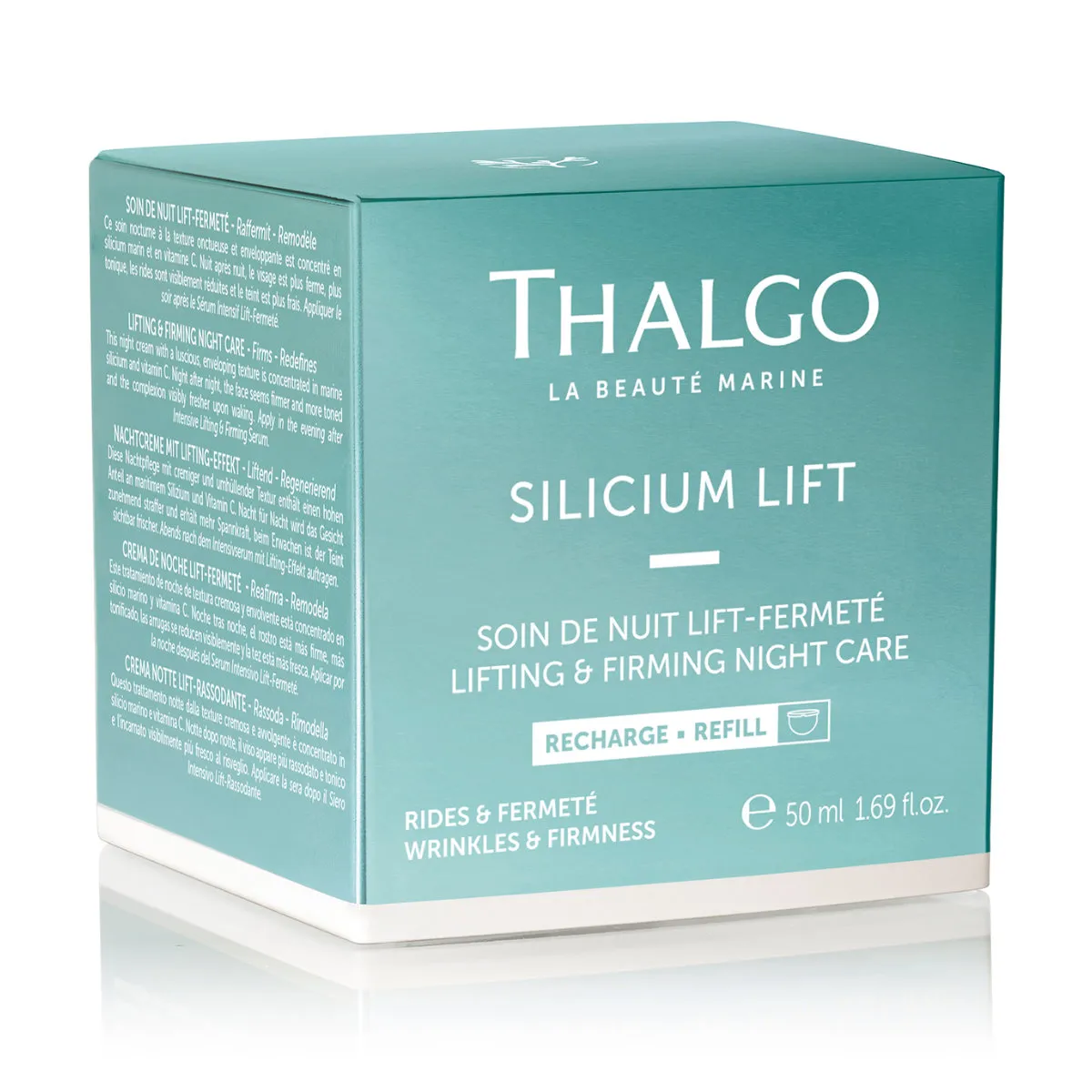 Liftingový a zpevňující krém Thalgo Silicium Lift s obsahem řasového komplexu bohatého na mořské silicium a vitamin C pleť zpevňuje, posiluje a obnovuje její pružnost. Pro méně pomačkaný vzhled po probuzení. Krém obohacený o extrakt Chlorelly aktivuje buněčnou regeneraci během noci. Má přepychovou zahalující texturu.