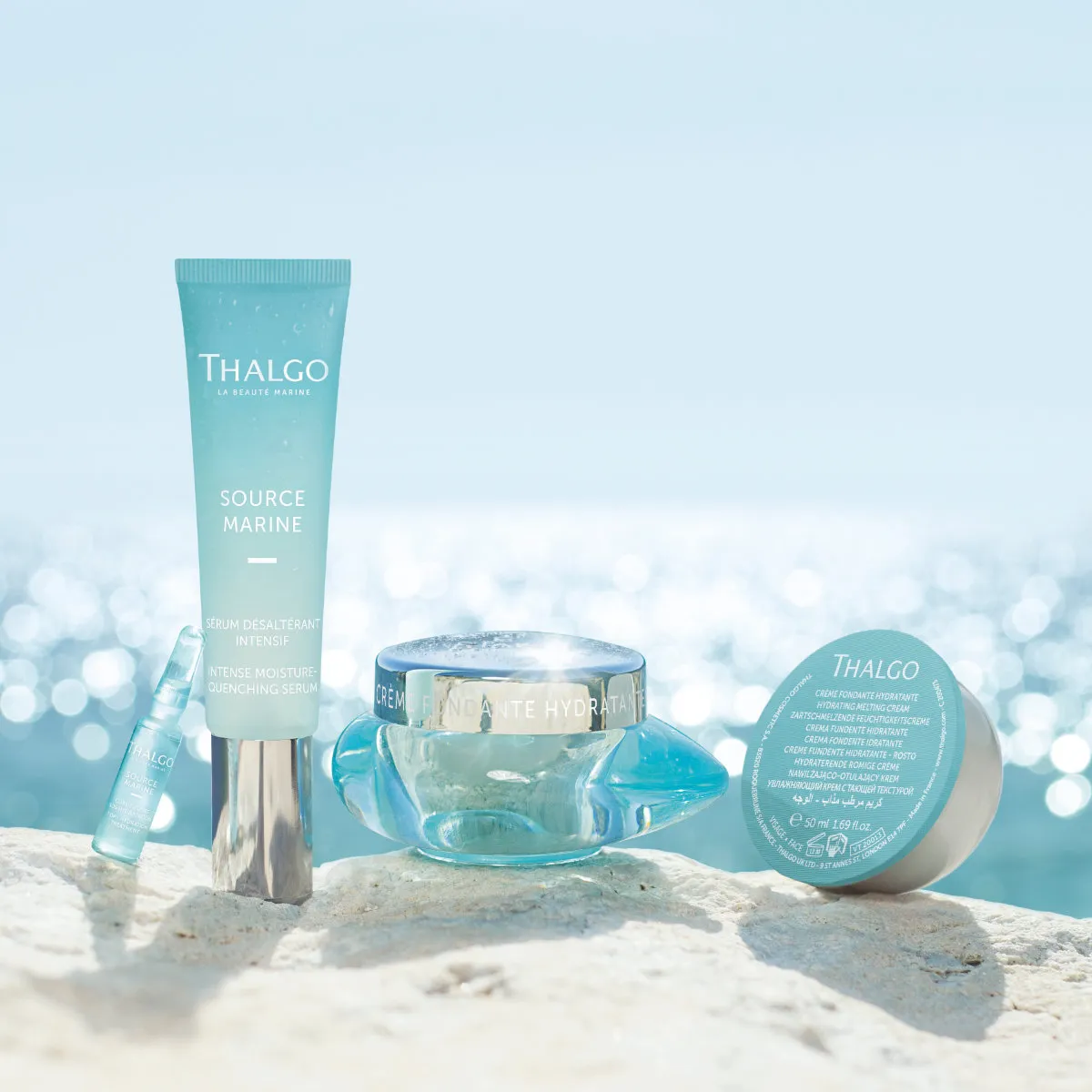 Jemný hydratační krém Thalgo Source Marine okamžitě obnovuje pocit pohodlí pleti a má 24h účinnost. Mořská voda Seve Bleue des Océans bohatá na mořský mangan posiluje kožní bariéru a omezuje ztrátu vody z pleti. Současně obnovuje zásobu vody a zvyšuje její výměnu v bazální membráně. Filtrát patentovaných Mikronizovaných mořských řas dodává pleti minerály a mikroživiny, které jsou nezbytné pro její správné fungování. Pleť revitalizuje a posiluje. Krém je obohacený o síť alginátů nasycenou hydratačními molekulami, které se postupně uvolňují do pleti a poskytují 24h účinnost. Jeho jemná textura se rozplývá na pleti a navrací jí komfort. Odstraňuje pocit pnutí a linky způsobené dehydratací.