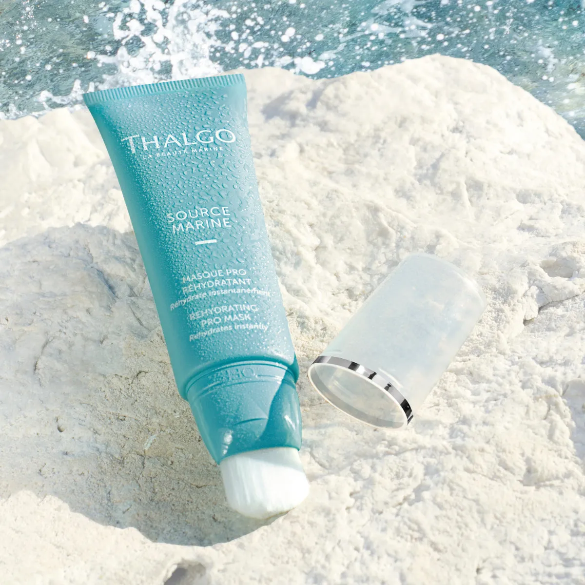 Maska pro obnovu hydratace Thalgo Source Marine pleť okamžitě vypíná, vyhlazuje jemné linky, obnovuje pružnost a pocit pohodlí. Mořská voda Seve Bleue des Océans bohatá na mořský mangan posiluje kožní bariéru a omezuje ztrátu vody z pleti. Současně obnovuje zásobu vody a zvyšuje její výměnu v bazální membráně. Filtrát patentovaných Mikronizovaných mořských řas dodává pleti minerály a mikroživiny, které jsou nezbytné pro její správné fungování. Pleť revitalizuje a posiluje. Složení obohacené o kyselinu hyaluronovou o vysoké molekulární hmotnosti vytváří na povrchu pleti hydratační film a vyhlazuje jemné linky způsobené dehydratací. Gelová textura se rozplývá na pleti. Je obsažena v tubě s praktickým aplikačním štětečkem.