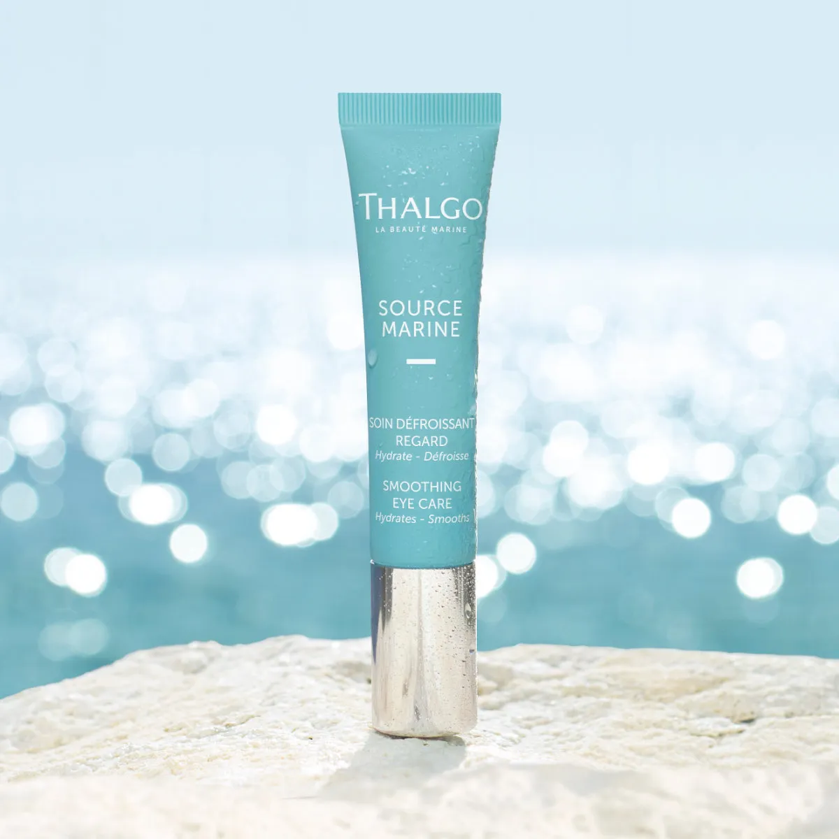Vyhlazující péče na oční okolí Thalgo Source Marine odstraňuje jemné linky, hydratuje, a probouzí oční kontury. Mořská voda Seve Bleue des Océans bohatá na mořský mangan posiluje kožní bariéru a omezuje ztrátu vody z pleti. Současně obnovuje zásobu vody a zvyšuje její výměnu v bazální membráně. Filtrát patentovaných Mikronizovaných mořských řas dodává pleti minerály a mikroživiny, které jsou nezbytné pro její správné fungování. Pleť revitalizuje a posiluje. Složení obohacené o kyselinu hyaluronovou o vysoké molekulární hmotnosti vytváří na povrchu pleti hydratační film a vyhlazuje jemné linky způsobené dehydratací. Má svěží fluidní texturu bez obsahu parfemace.