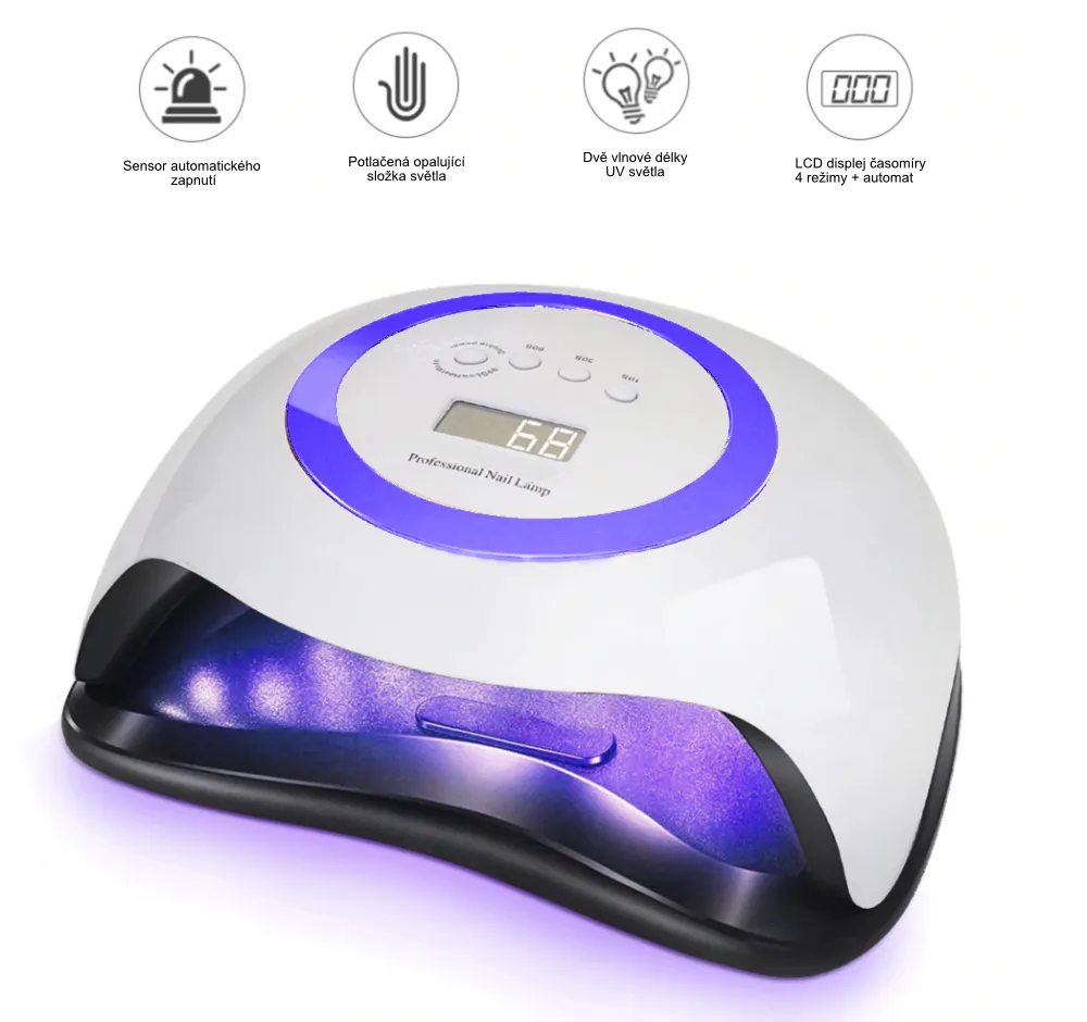 Profesionální UV LED lampa s dvojitou vlnovou délkou a výkonem 168W/42 LED vytvrzuje gelové laky a péče již za 10s.