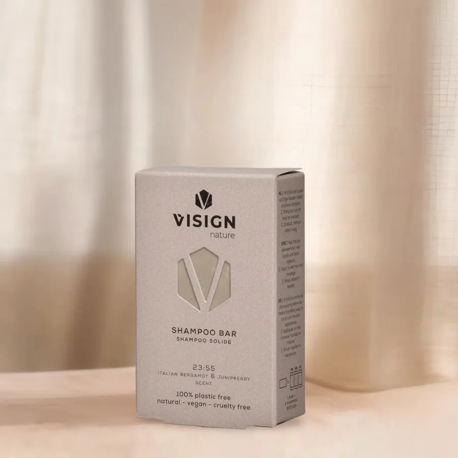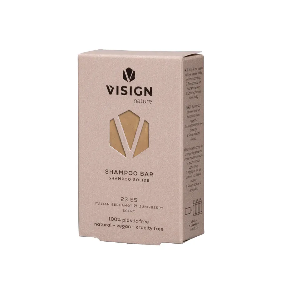 Šampon obsahuje bambucké máslo a arganový olej, které vyživují vlasy. Aloe vera hydratuje pokožku a rýžový protein zase dodá vašim vlasům objem. Po použití vložte šampon do našeho obalu vytvořeného právě pro tyto tuhé produkty, který se dá zavěsit i za ouško. Vhodné pro všechny typy vlasů. Koupelové a tělové produkty VISIGN NATURE obsahují olejový extrakt ze santalového dřeva, damašskou růží a extrakt z eukalyptu. Perfektní péče pro výživu a hydrataci pokožky. Jsou veganské a cruelty-free. Neobsahují parabeny, sulfáty, minerální oleje, lepek, ethanolamin, cyklické silikony a PEG sloučeniny. Obal je vyroben z cukrové třtiny a plně recyklovatelný.